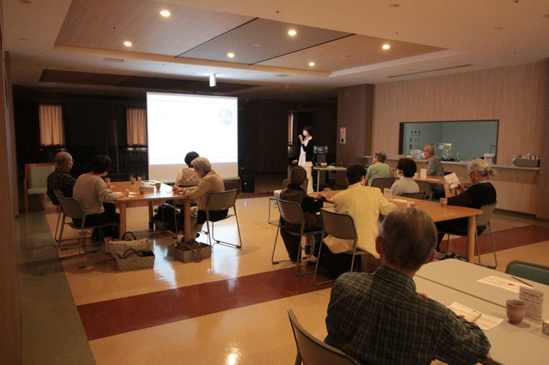 Hari ini, di Panti Jompo Khusus “Sunlight” telah diadakan acara “Orange Café”. Perawat kesehatan dari poliklinik rumah sakit kami memberikan ceramah dengan tema “Musim Gugur ○○”. Setelah ceramah, semua peserta melakukan senam bersama dan menikmati waktu yang menyenangkan dalam suasana yang hangat dan akrab.