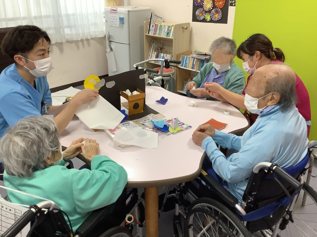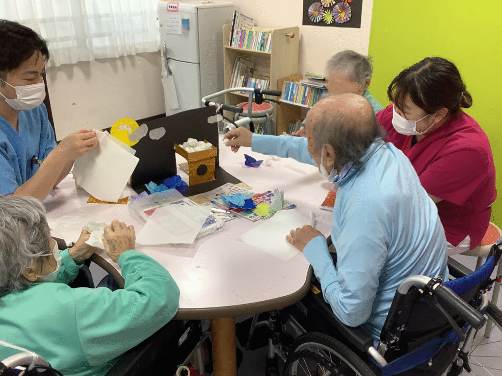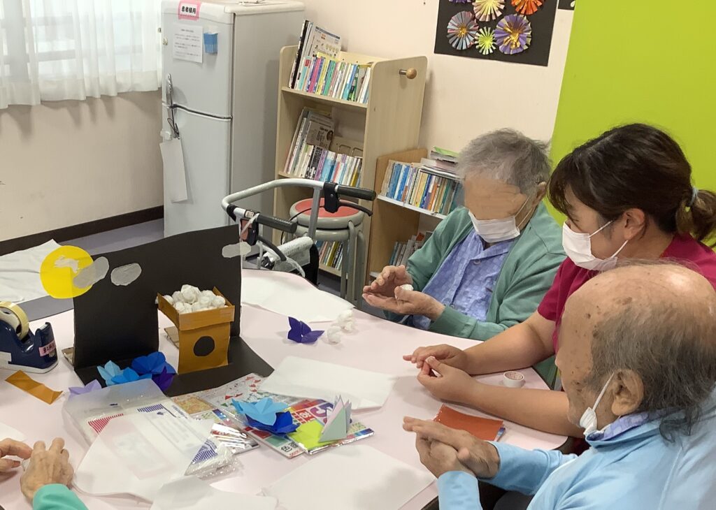 お月見の置き飾りを作成しました。 2025年9月5日 最終更新日時 : 2025年9月5日 国分寺病院 秋の夜長、お月見に合わせて手先を使った置き飾りを作成しました。 指先の運動や小さな動作を促すことで手の機能維持やリハビリテーションの一環としても効果的です。